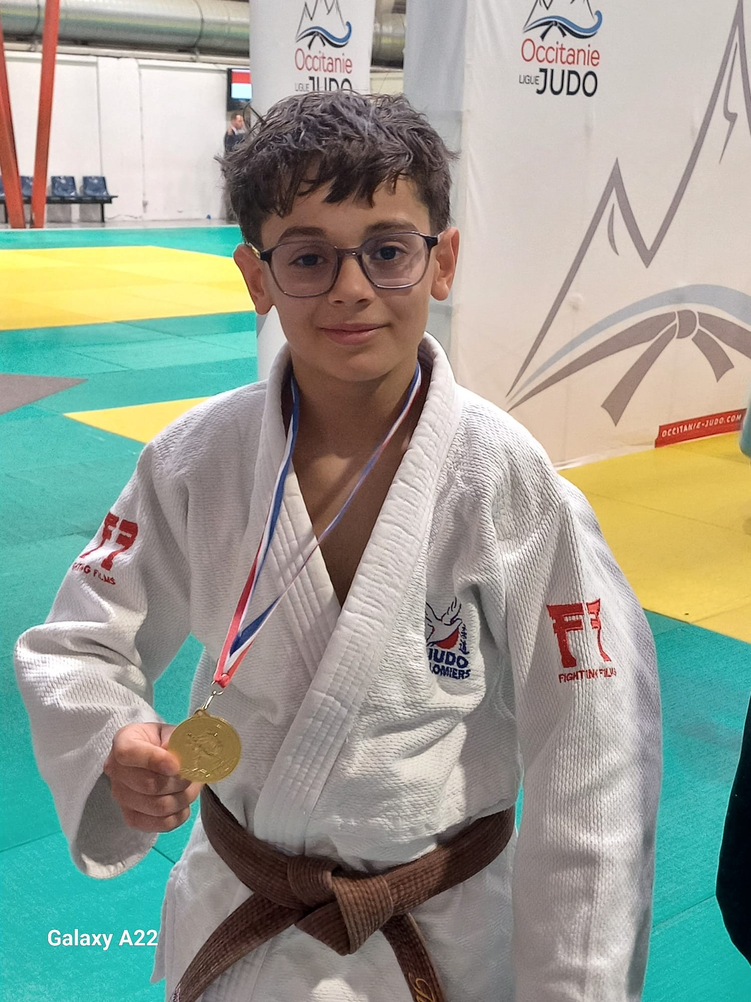 🥇Alexis DANFLOUS- PUIGDEMONT-42kg remporte  une très belle médaille d'or. Champion de Ligue Occitanie avec un parcours pas facile car la catégorie était dense. Mais Alexis a progressé au plan tactique et sur la gestion de la journée avec 5 combats.