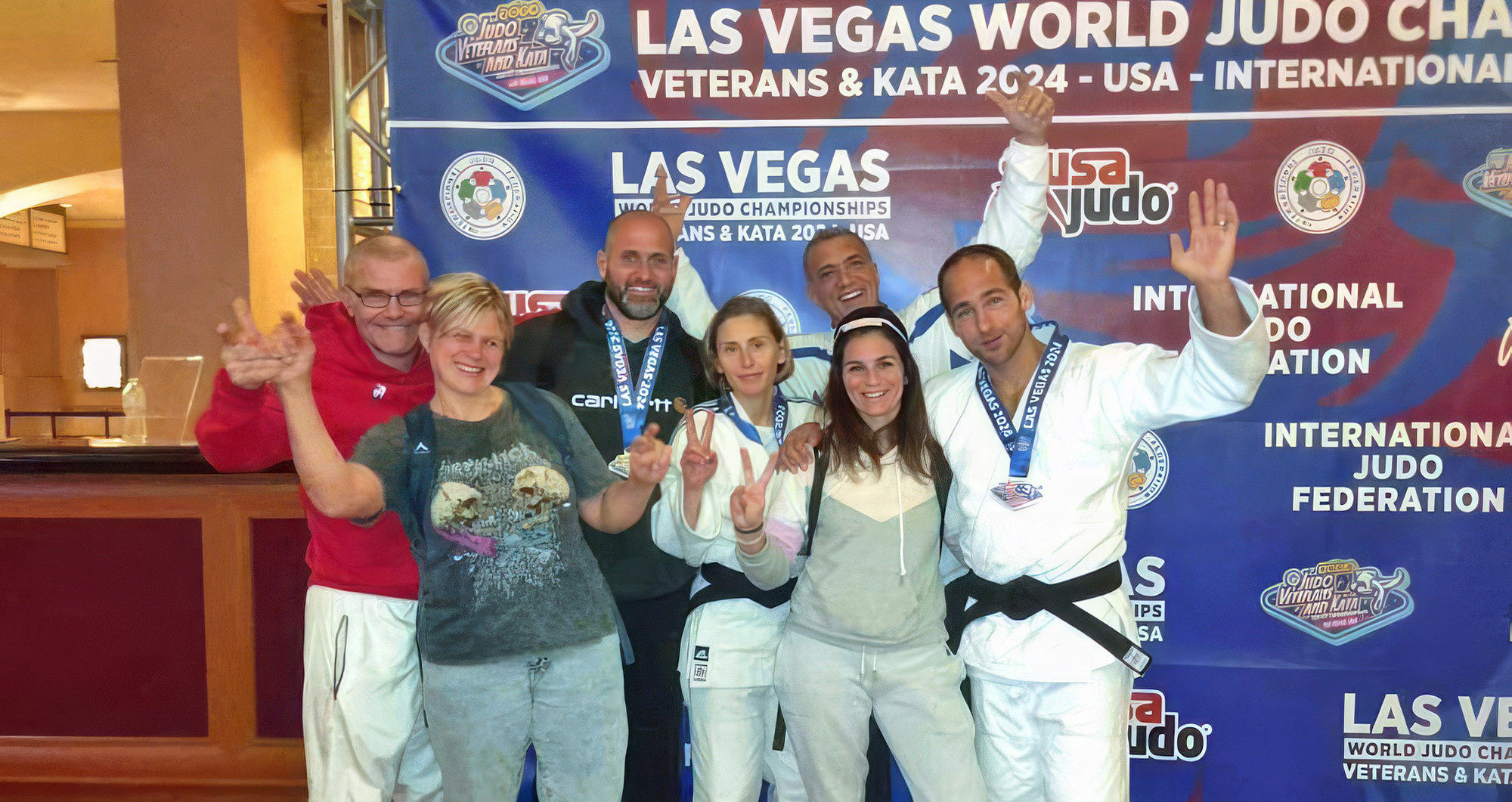 En novembre 2024, 5 judokas ont participé aux Championnat du Monde Vétérans à Las Vegas. Lucie BRONNER et Grégory CAUSERO décrochent la prestigieuse médaille d'or !
